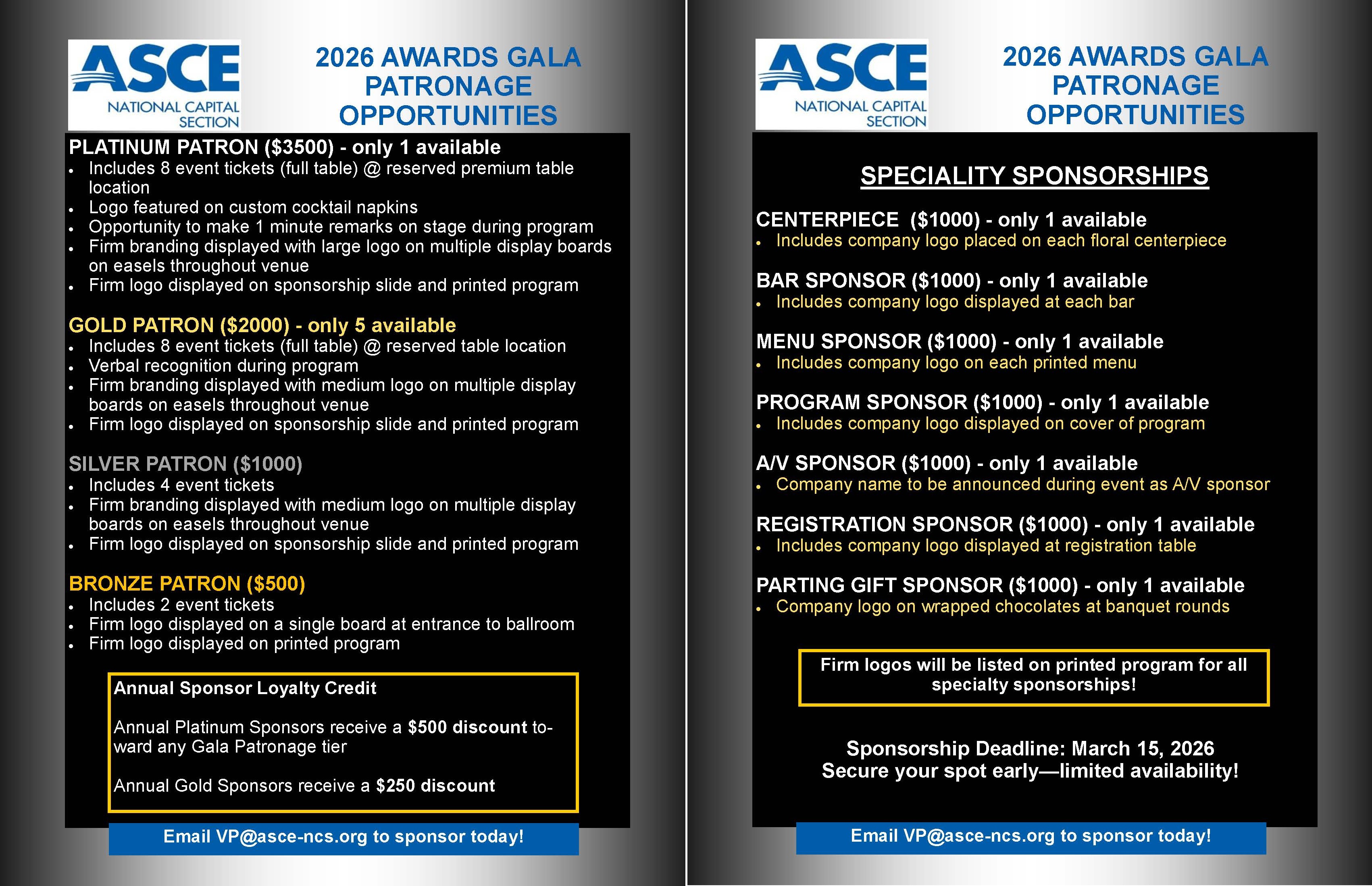 If your organization is interested in supporting this year’s Gala, I encourage you to review our Gala Patronage Opportunities included at the end of this message. They offer a range of benefits including prominent firm recognition, reserved seating, and significant brand exposure to the region’s engineering leaders.