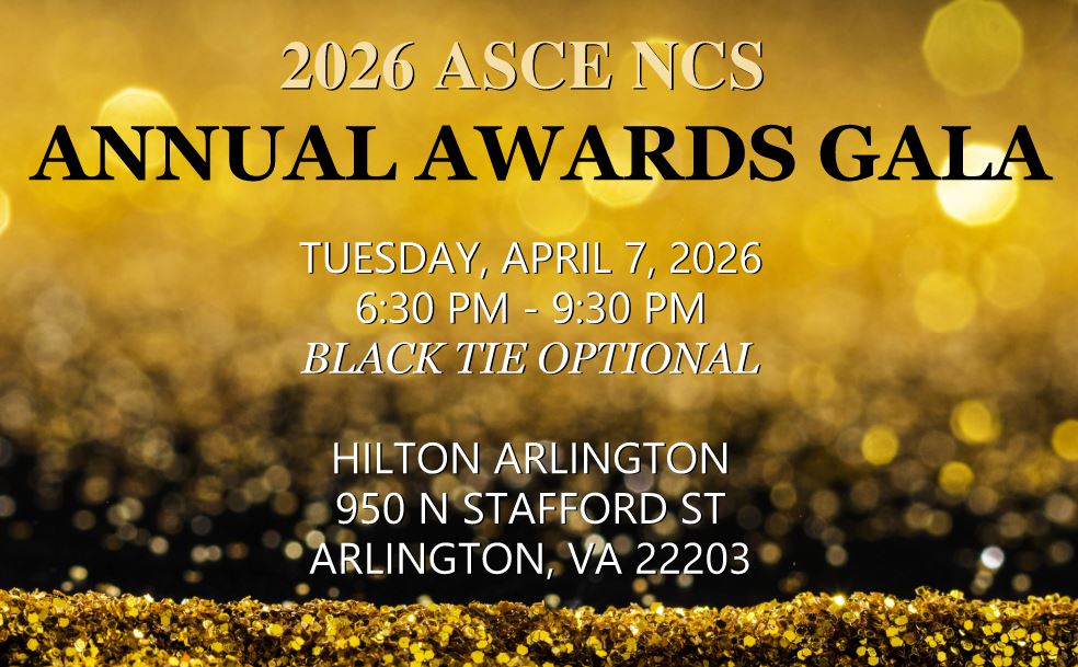 It is my pleasure to invite you to the 2026 ASCE National Capital Section’s Annual Awards Gala, the most distinguished celebration of civil engineering excellence in the National Capital Region.